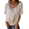 European And American Summer Loose Women's V-neck Casual Cotton Linen Top
